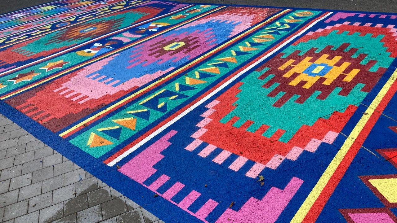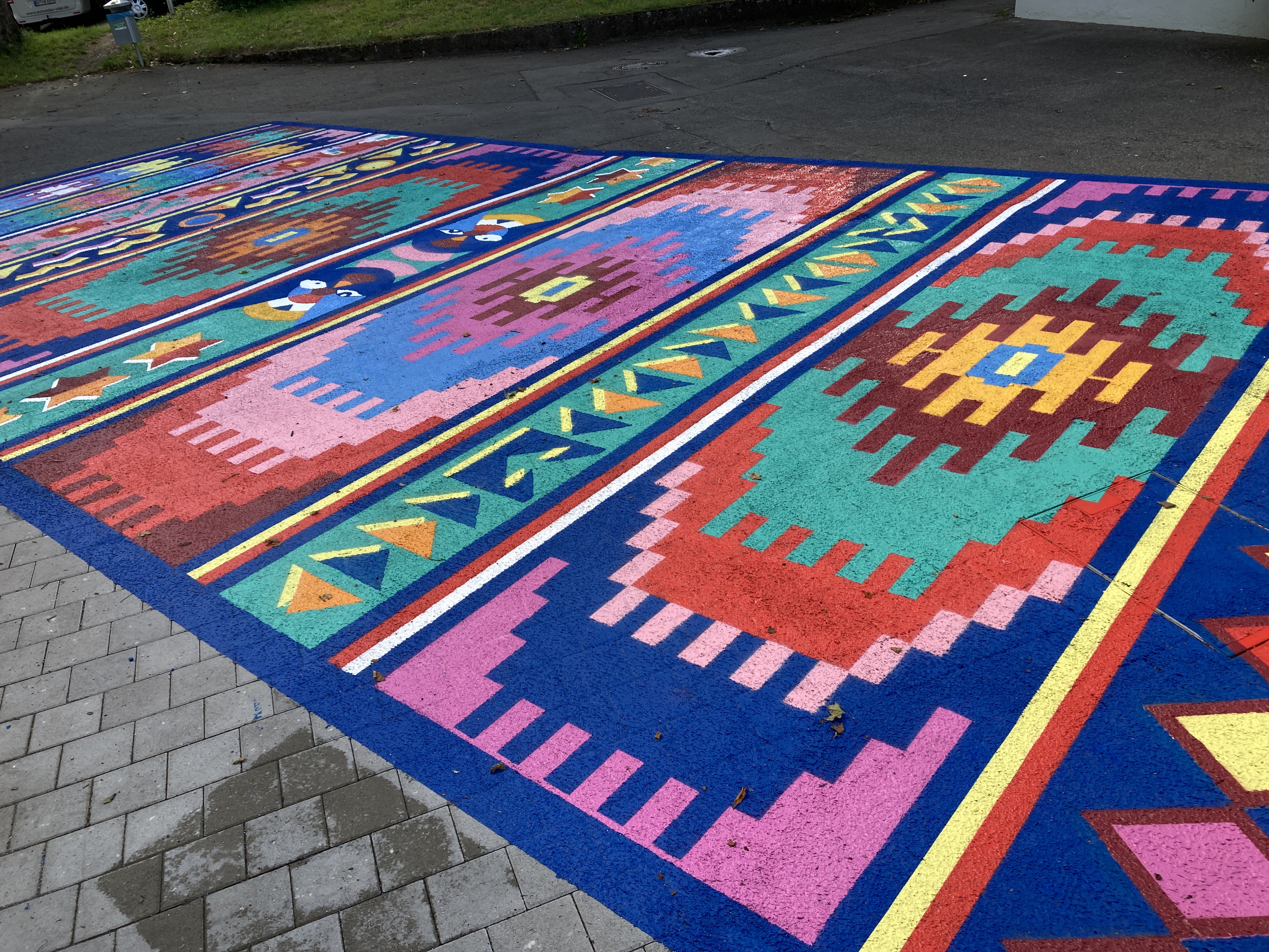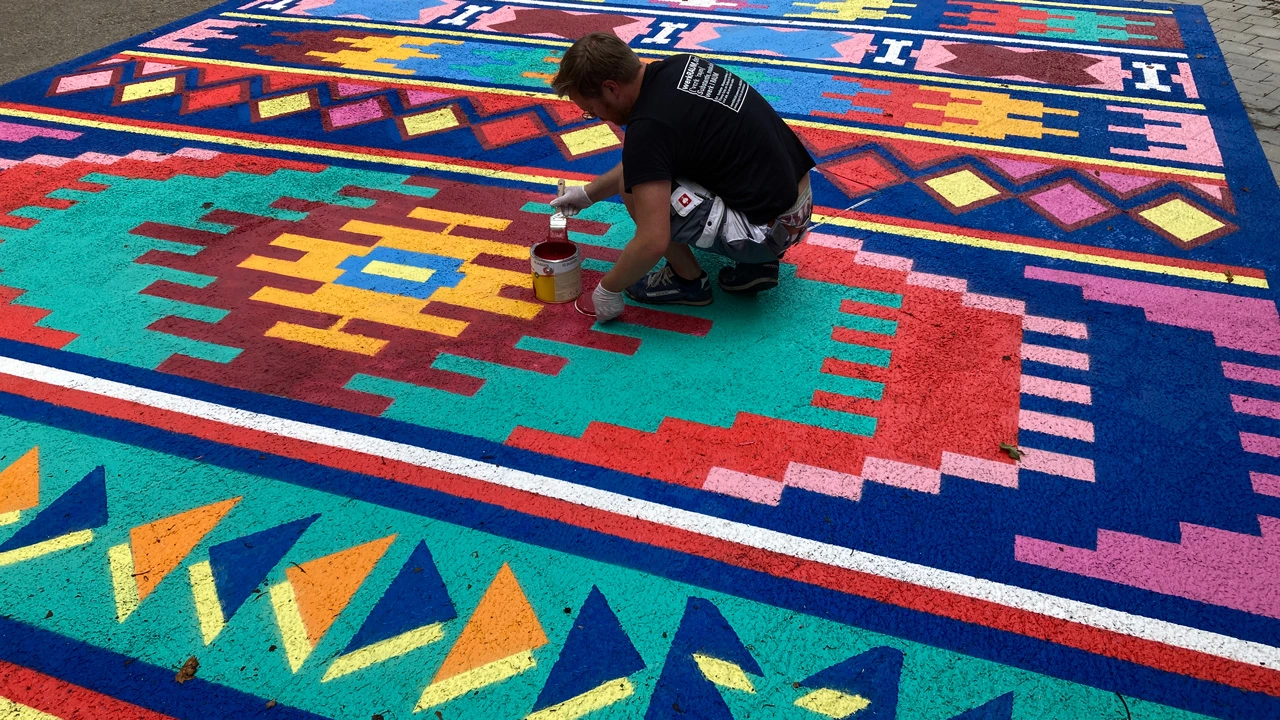 Seit 20. Juli 2024 gibt es im Vorhof der Kunsthalle Göppingen ein 100 Quadratmeter großes, auffallend farbenprächtiges Bodenkunstwerk zu bestaunen. Es handelt sich dabei um das Projekt „My world on a carpet – weaving future“ der österreichischen Künstlerin Iris Andraschek. Die Kunstaktion würdigt die 40-jährige Länderpartnerschaft zwischen Baden-Württemberg und Burundi und setzt ein farbenfrohes Zeichen für Offenheit, Toleranz und interkulturellen Austausch. Der Möglinger Farbspezialist JAEGERLACKE hat das Projekt intensiv begleitet und unterstützt.