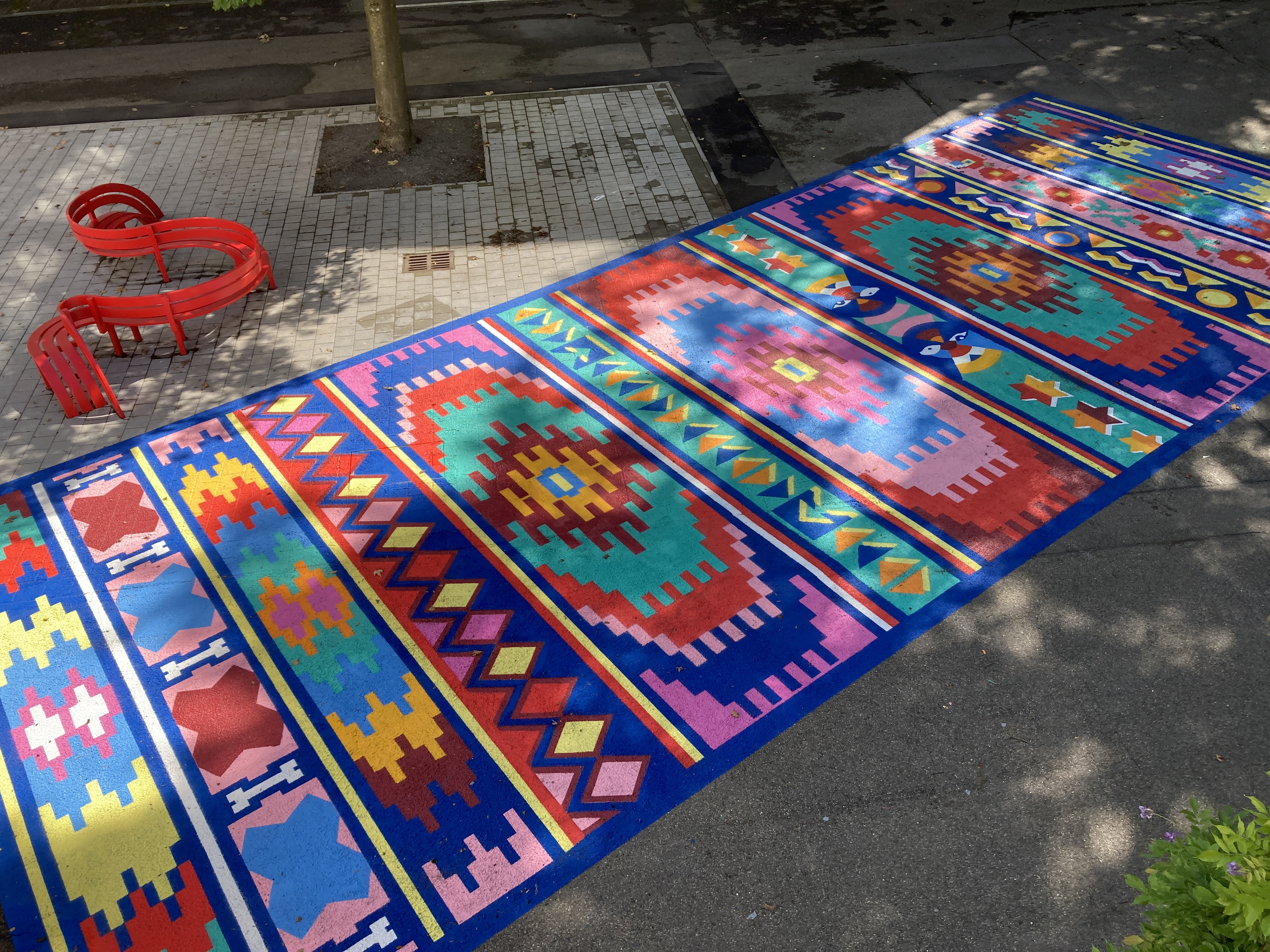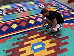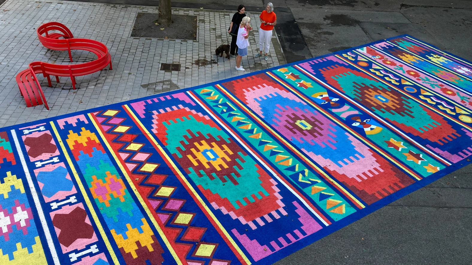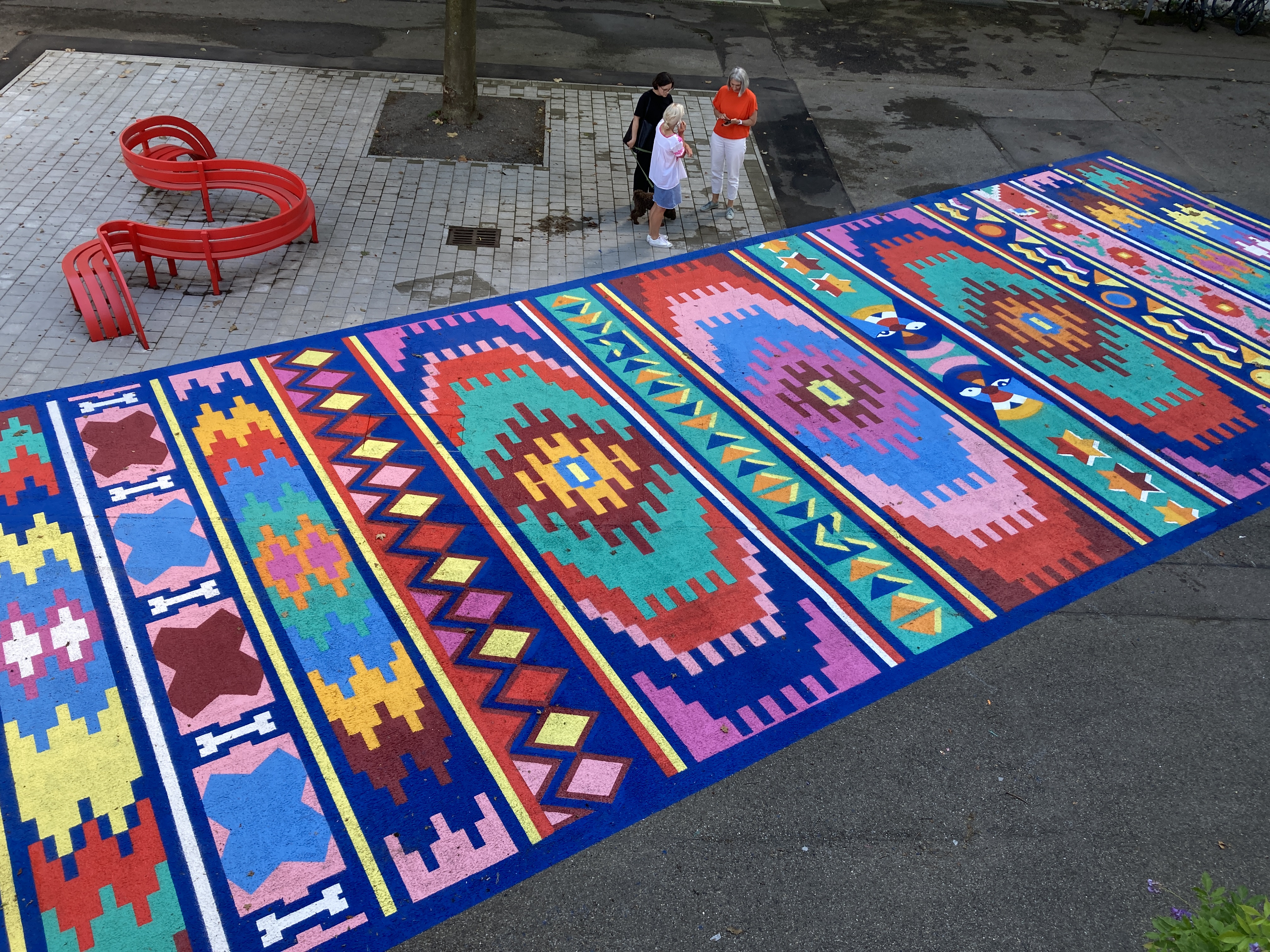 Seit 20. Juli 2024 gibt es im Vorhof der Kunsthalle Göppingen ein 100 Quadratmeter großes, auffallend farbenprächtiges Bodenkunstwerk zu bestaunen. Es handelt sich dabei um das Projekt „My world on a carpet – weaving future“ der österreichischen Künstlerin Iris Andraschek. Die Kunstaktion würdigt die 40-jährige Länderpartnerschaft zwischen Baden-Württemberg und Burundi und setzt ein farbenfrohes Zeichen für Offenheit, Toleranz und interkulturellen Austausch. Der Möglinger Farbspezialist JAEGERLACKE hat das Projekt intensiv begleitet und unterstützt.