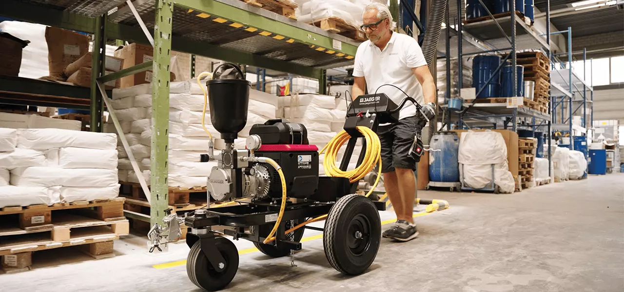 JAEGER läutet die Markiersaison 2025 mit zwei attraktiven Produktneuheiten ein: Der 764 Akku Airless Markierwagen mit leistungsfähigem und angenehm leisem Honda eGX Elektromotor ermöglicht professionelle, emissionsfreie Markierungsarbeiten jetzt auch im Innenbereich. In Verbindung mit der neuen 357 Kronalux® 2K-Aqua Industriemarkierung auf Wasserbasis lassen sich hochbelastbare Markierungen auf besonders effiziente, wirtschaftliche und umweltverträgliche Art erledigen. Selbst in so sensiblen Umfeldern wie der lebensmittelverarbeitenden Industrie.